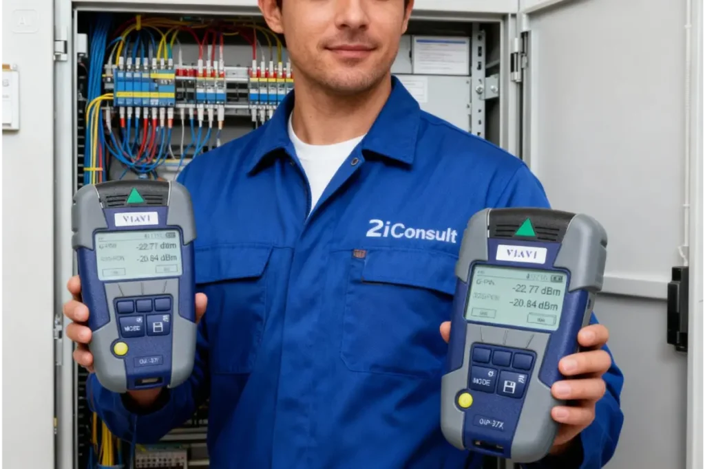 2iConsult propose des prestations complètes de mesure et de qualification des réseaux fibre optique par réflectométrie et photométrie, permettant de valider la conformité des installations, d’identifier les défauts et d’assurer un haut niveau de performance des infrastructures optiques.